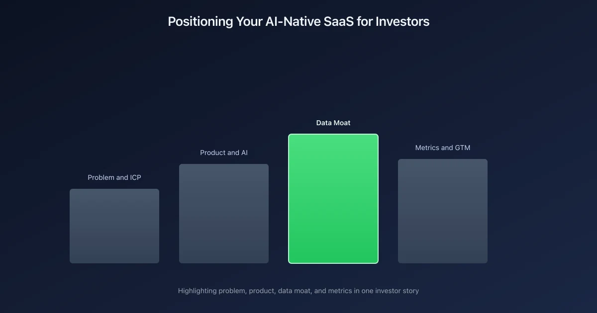 Strong AI-native positioning focuses on your data advantage. Investors want to see: